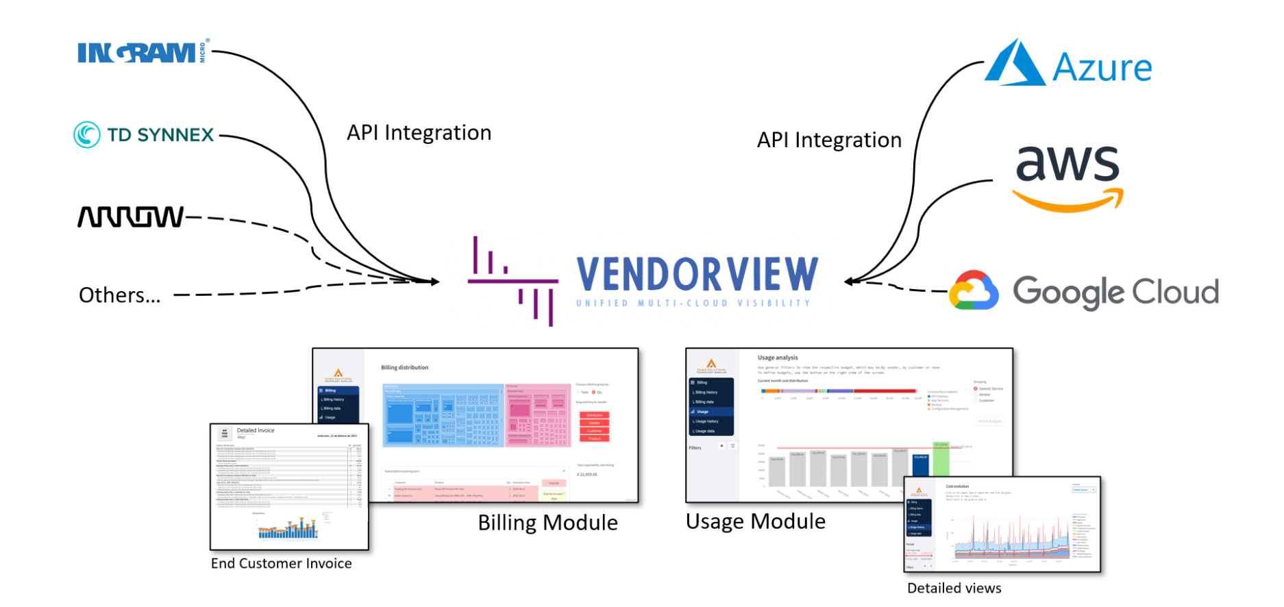 VendorView fornece aos provedores de serviços gerenciados (MSPs) e aos revendedores de valor agregado (VARs) uma visão consolidada do uso e do faturamento da nuvem em várias plataformas, permitindo operações contínuas e maior satisfação do cliente.